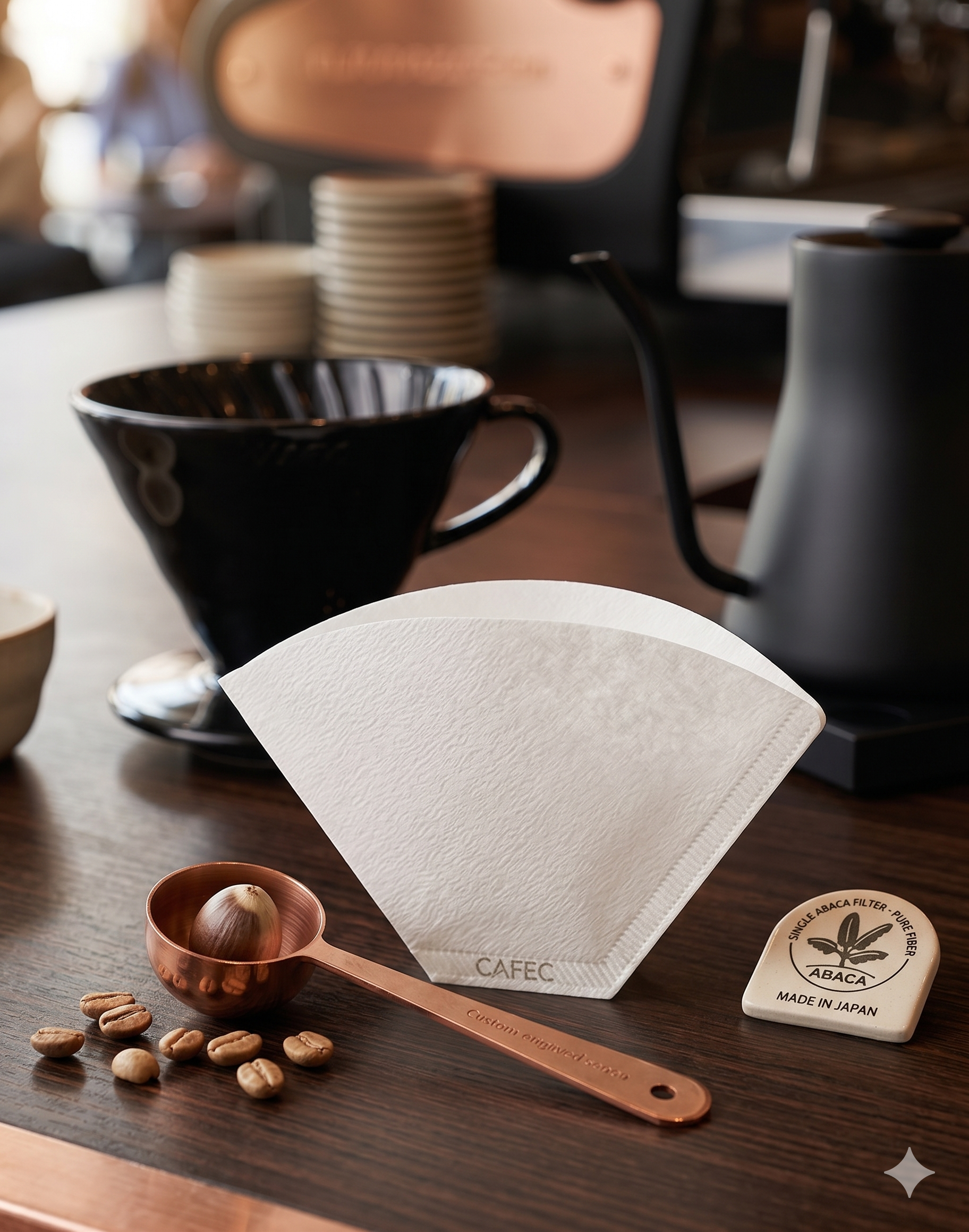 Enhance your pour-over experience with CAFEC V60 01 white paper filters. Crafted from refined, high-quality pulp, these filters are engineered to preserve the natural flavor of your coffee while ensuring a clean, sediment-free cup.