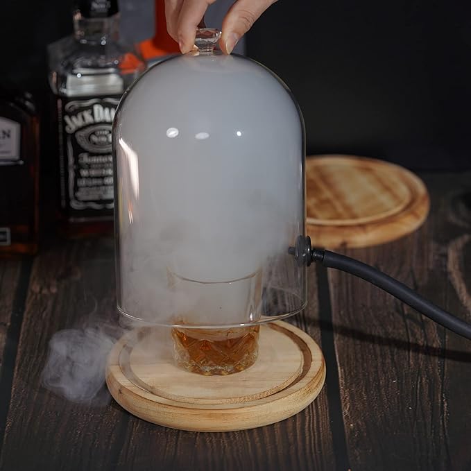 Elevate your presentation with this elegant smoking cloche. Designed to trap and intensify aromatic smoke, it allows flavors to fully infuse your dishes or drinks. Simply introduce smoke through the access port and let the glass dome work its magic—creating both rich taste and a stunning visual reveal.